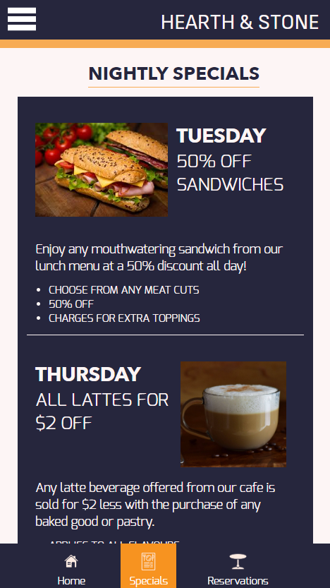 Main page mobile size
